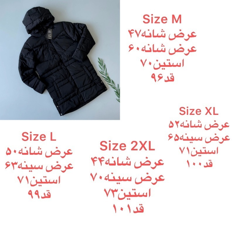 3XL: عرض شانه 59-عرض سینه 76-آستین 76-قد 110